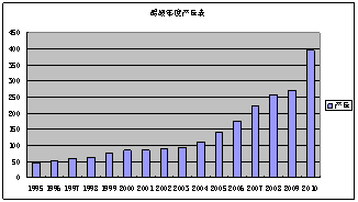 我國醋酸行業(yè)近幾年發(fā)展迅猛,產(chǎn)能、產(chǎn)量均有較大幅度的提高。2010年,我國醋酸行業(yè)產(chǎn)能空前釋放,產(chǎn)量突破歷史性的300萬噸以上,年新增產(chǎn)量近90萬噸。進出口貿(mào)易格局發(fā)生逆轉(zhuǎn),2010年醋酸出口量占當(dāng)年產(chǎn)量的5.6%,成為凈出口國。(見下圖)