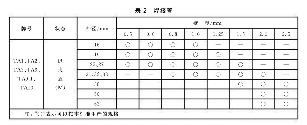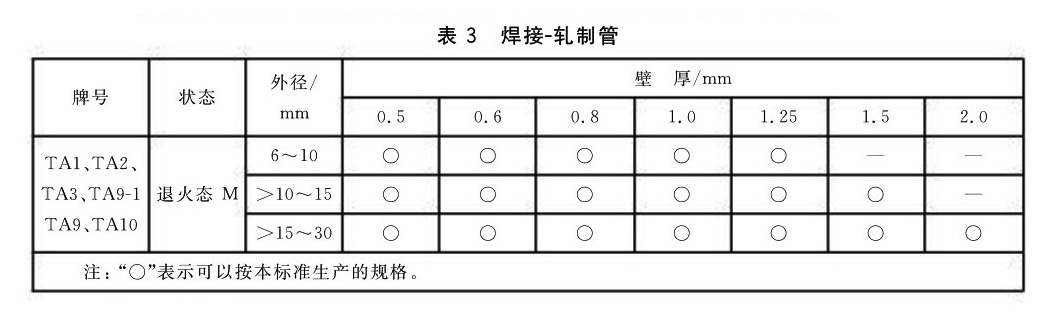 3.1.1.3 焊接-軋制法生產的鈦及鈦合金管的牌號、狀態和規格應符合表3的規定。