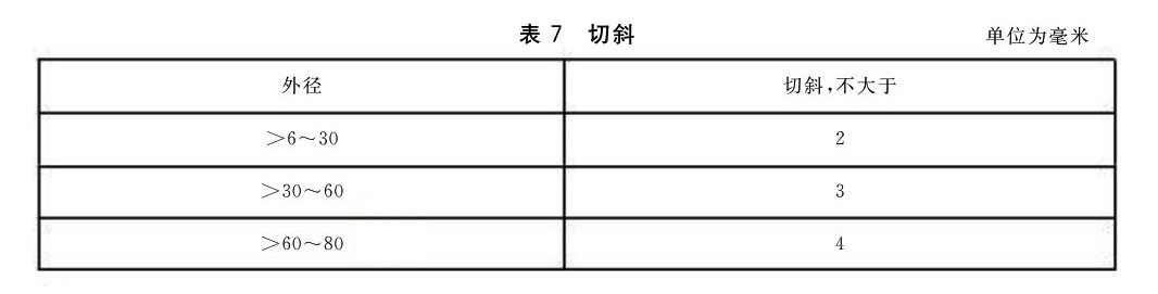 3.2.4 管材兩端應切平整,不應有毛刺,切斜應符合表7的規定。