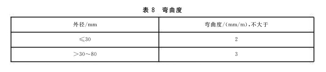3.2.5 管材的彎曲度應符合表8的規定。