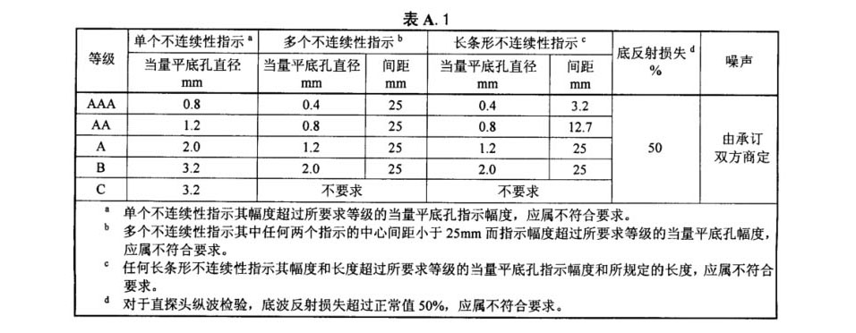 材料技術條件中,應按表A.1指明不同規格棒材的驗收等級及要求的噪聲。
