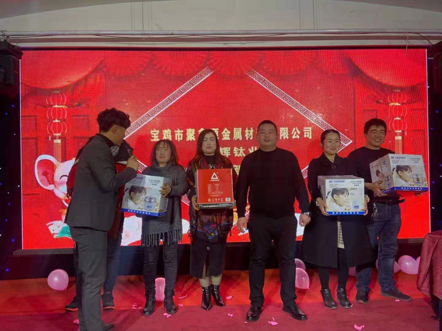 春節漸近,為使全體員工度過一個歡樂、祥和、平安的新春佳節,寶雞市聚鑫源金屬材料有限公司(科輝鈦業) 于2020年1月21日晚在寶雞隆重舉行迎新春年會。