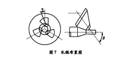 軋輥系統(tǒng)是軋機的重要組成部分,由三個繞軋制軸線互成120°的帶漸錐形輥的輥座及相應(yīng)的調(diào)整裝置組成。三個傾斜的軋輥軸線與軋制中心線構(gòu)成傾斜角B(碾軋角)和偏轉(zhuǎn)角a,并圍繞棒坯的軸線按120°角平均分布,這樣有利于棒坯的旋轉(zhuǎn)咬人。三個互成120°布置的漸錐形軋輥之間形成了軋件的塑性變形區(qū)(見圖7所示)。借助于輥系的公轉(zhuǎn)與軋輥的自轉(zhuǎn),自動咬人軋件,形成穩(wěn)定的軋制過程,使軋件沿著軋制中心線無轉(zhuǎn)動軸向進給。變形材料在變形區(qū)處于三向壓應(yīng)力狀態(tài),受到軋輥的均勻壓縮,產(chǎn)生塑性變形。