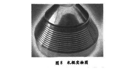 圖8是軋輥的實物照片, 可以看出:PSW三輥行星軋機的軋輥由10~20個變形區(qū)段組成的,每一個變形區(qū)段在瞬間完成變形一—定徑過程,最后由10~20個小變形區(qū)段組合成整體變形,完成整個變形過程,使道次變形率可達80%~95%以上,金屬的變形行為屬于點變形,與旋壓變形類似。