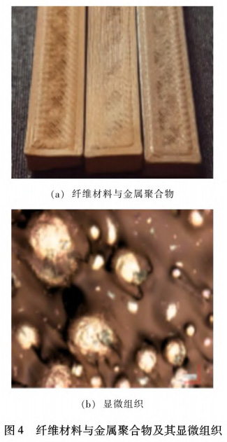 Fafenrot等人心41利用熔融沉積建模(Fused deposi.tion modeling,FDM)技術將纖維材料與金屬聚合物混合產生了具有有趣的光學和力學特性的印刷品,如圖4所示。并通過拉伸和彎曲試驗顯示,大部分含有青銅的混合材料顯著降低了力學性能,但3D打印物體的抗拉強度與原絲相當,表明印刷工藝質量充足。