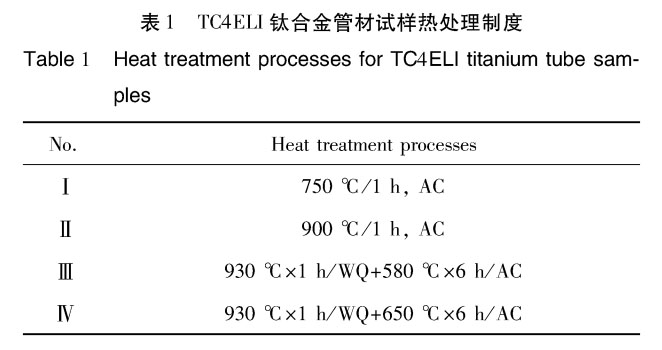 TC4ELI屬于中強高韌型低間隙鈦合金,它最早是以“ 損傷容限” 的概念在飛機結構設計中提出的,是國外應用最為廣泛的鈦合金[2,3]。國內也相繼對其進行了研究與開發,但TC4ELI鈦合金加工變形抗力較大,其產品多以板材、鍛件居多,而在大直徑管材制備方面鮮有報道。關于TC4ELI常規材料組織與性能的研究較多,相關文獻[4,5]報道稱,斷裂韌性與熱處理制度有很大關系,隨著固溶處理溫度的升高,斷裂韌性提高;如果空冷后時效,這種效應會加強;還有文獻[6’7] 稱β區熱處理相對于β變形具有更高的斷裂韌性,歸結為區熱處理后顯微組織的特點是更大的β晶粒尺寸和晶內片狀α相的織構性;前期作者團隊對TC4-DT鈦合金鍛件進行了組織和力學性能研究,結果表明隨著溫度的升高,斷裂韌性得到提高,但相變點以上溫度淬火+ 時效處理會導致沖擊韌性急劇下降[8]。