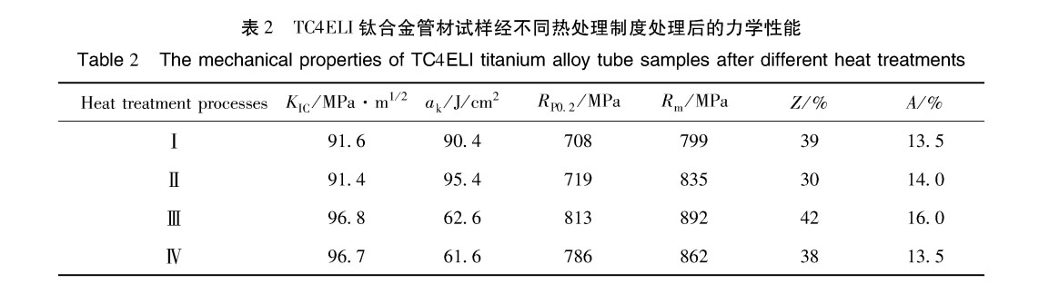 ( 2 ) 對TC4ELI鈦合金管材試樣進行退火處理(制度I,II ) ,隨著退火溫度的升高,強度、沖擊韌性均有所上升,且沖擊韌性較高(>90J/cm2 ) 。