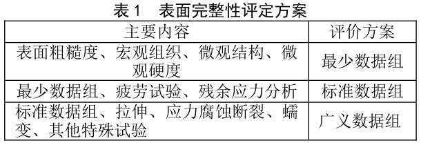 通過優化切削速度、進給速度和切削深度等參數、制定表面完整性評定方案(表 1),可以減少機加工過程中的熱影響和塑性變形,改善表面完整性,并減少表面缺陷的產生。采用表面精加工技術,如研磨、拋光和超精加工等,可以進一步提高表面的光潔度和平整度,減少表面粗糙度和微觀缺陷,提高材料的疲勞強度和抗疲勞裂紋擴展性能。表面噴丸處理也是一種有效的改善表面完整性的方法。噴丸處理可以通過物理沖擊去除表面缺陷,并增加表面壓縮應力,提高材料的抗疲勞性能。適當的表面化學處理可去除表面氧化物和其 他雜質,提高表面純凈度,改善耐腐蝕性能,并間接提高疲勞性能[5]。