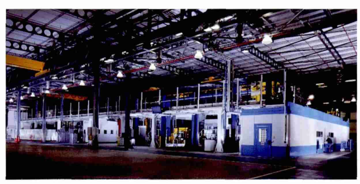 鈦合金在飛機主結構件中的應用日益增多, 其中不乏發動機吊艙、高載荷機翼和機身部件等大尺寸結構件, 這也對加工設備提出了更高要求。瑞士斯達拉格海科特公司最新推出的BTP50 00是大型鈦合金臥式數控銑床中的典型代表。該設備可專門用于大型航空航天鈦合金結構件加工,最顯著的特點是高剛性框架結構和高加工精度,其X軸行程500 0mm ~ 600 0mm,Y軸行程200 0mm,Z 軸行程1 200mm,能夠完成鈦合金結構件從粗加工到精加工的全過程。此外,該公司推出的由多臺STC1 250 五軸臥式加工中心組成的柔性制造系統(FMS)也可圈可點。這種柔性制造系統一旦收到零件生產相關數據指令,就會對每臺加工設備當前的作業量進行檢查,從而以最合理的方式安排零件的生產任務,以適應不同零件不同批量的生產需求。BAE 系統公司在新建的鈦加工廠的高度自動化的計算機集成制造系統中就采用了兩套由8臺STC12 50 加工中心組成的柔性制造系統,主要用于完成機身、垂直尾翼和水平尾翼等關鍵結構件的加工。