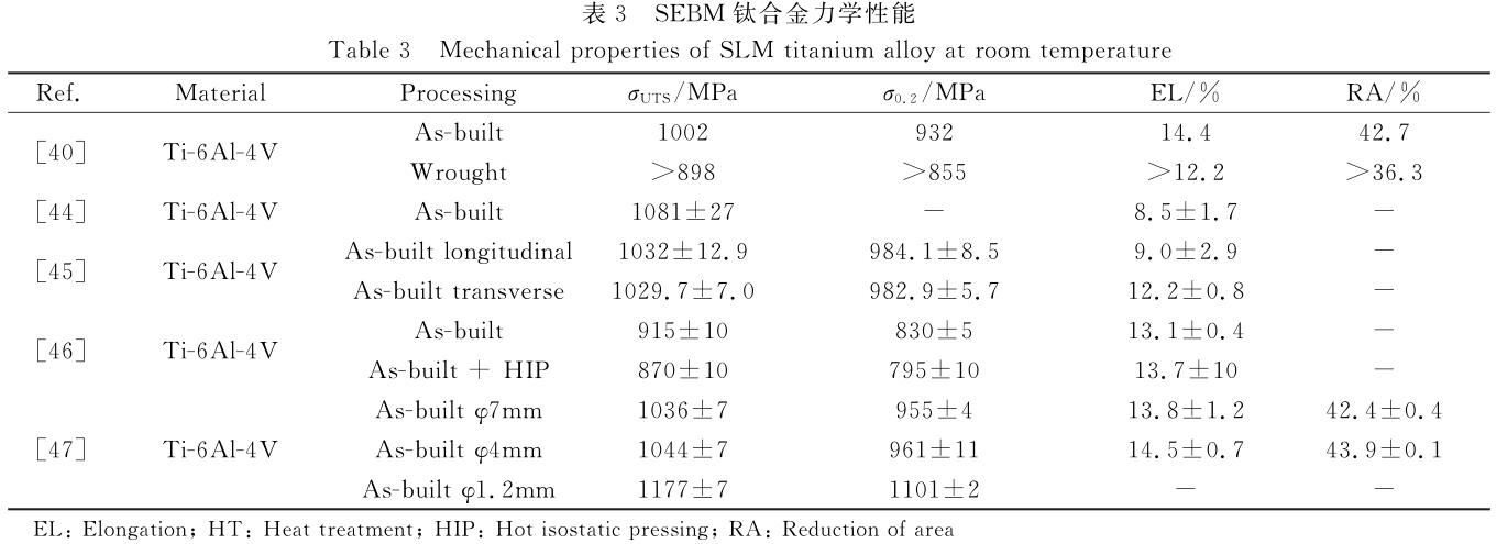 43KarlssonJ,SnisA,EngqvistH,etal.Characterizationandcompa-risonofmaterialsproducedbyelectronbeammelting(EBM)oftwodifferentTi-6Al-4Vpowderfractions[J].JMaterProcessingTech-nol,2013,213(12):2109