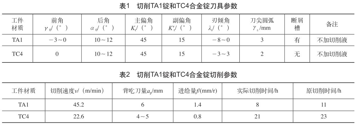因此,根據(jù)鈦錠加工特點(diǎn)研究最佳的刀具參數(shù)和切削用量尤為重要。
