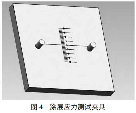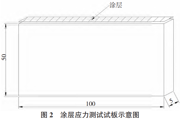 文章參考 Almen 試驗基本方法,采用剝離法確定涂層應力,具體操作方式為在規格為 100mm×50mm×5mm 的試板端面噴涂涂層,試板規格如� 2 所示,噴涂好的試樣達到規定厚度時用刀片將涂層從試板表面剝離,測量涂層變形程度。需要進行涂層后處理時,涂層隨試板一起處理,然后再剝離測量涂層變形程度。
