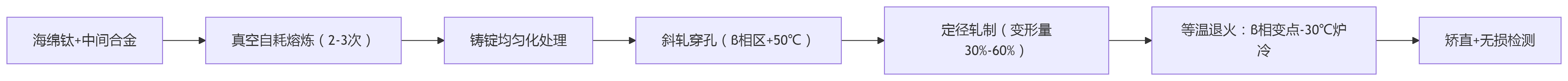 短流程工藝:鑄錠→斜軋穿孔→定徑軋制成形,降本30%(成材率85%)。